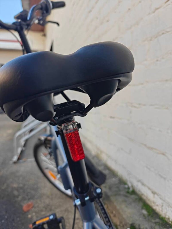 20" wielen met enkelwandige velgen en stalen naven. Speciaal ontwikkelde 20x1.75 stadsbanden met goede grip en rendement. Het vergrendelsysteem maakt dragen en opbergen makkelijker.